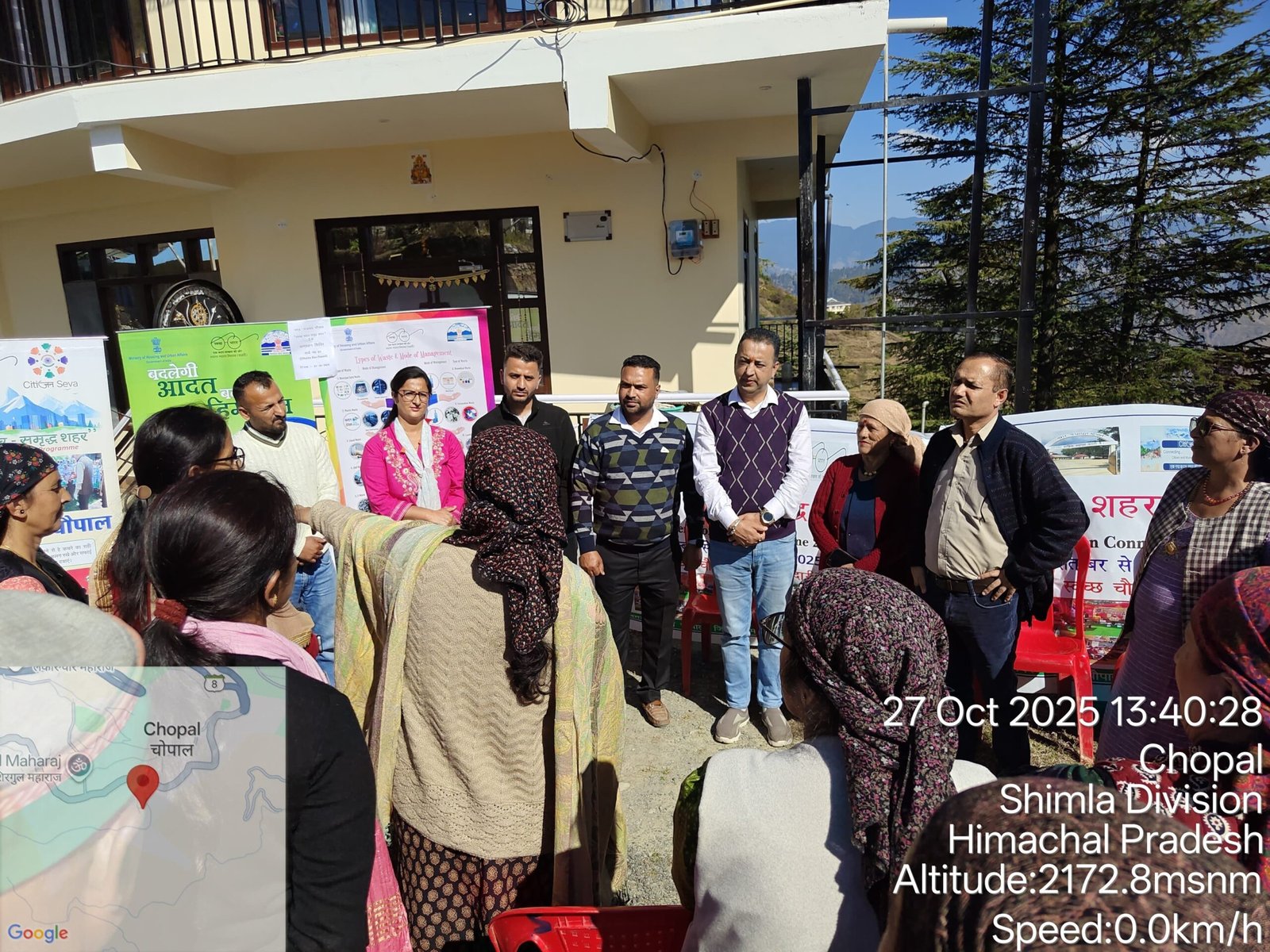 नगर पंचायत चौपाल में “स्वच्छ शहर समृद्ध शहर “ 2.0 के अंतर्ग  वार्ड न० 1 में समाधान शिविर का आयोजन किया गया जिसमे नागरिकों को सफाई के प्रति जागरूक किया गया ! नागरिकों की शिकायतें सुनी गई। समस्याओं के समाधान को शीघ्र अति शीघ्र निपटाने का भरोसा दिया गया।