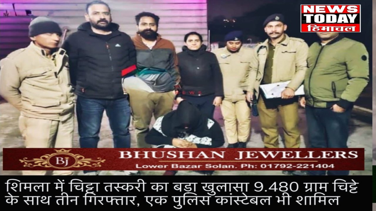 शिमला : शिमला में चिट्टा तस्करी का बड़ा खुलासा 9.480 ग्राम चिट्टे के साथ तीन गिरफ्तार,एक पुलिस कांस्टेबल भी शामिल..!